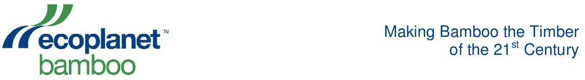 Managed by EcoPlanet Capital Management, LLCCC: David Cox, President and Director EcoPlanet Bamboo (UK) LTD
