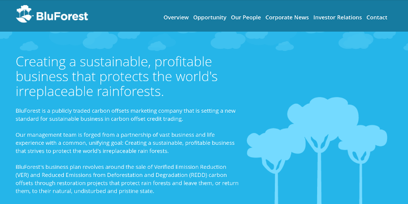 BluForest Inc: “Creating a sustainable, profitable business that protects the world’s irreplaceable rainforests.” Really?