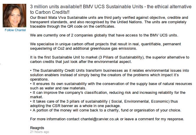 Carvier Limited: “3 million units available!!” from Brazil – the ethical alternative to carbon credits?