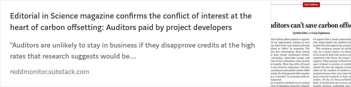 Verra points to new methodologies that it says will improve the credibility of carbon claims. These may be a step in the right direction for credit quality. But these new methodologies do not address the foundational problem we cite, which is having auditors selected and paid by the firms being audited. So long as that bias-inducing structure exists, auditors cannot play the integrity-guaranteeing role they have been claimed to fulfill.