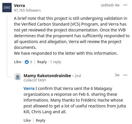 UPDATE — 9 March 2026: On LinkedIn, Verra announced that it had replied to the six organisations’ letter and Mamy Rakotondrainibe of the Malagasy NGO Collectif TANY confirmed that the response was dated 6 February 2026: