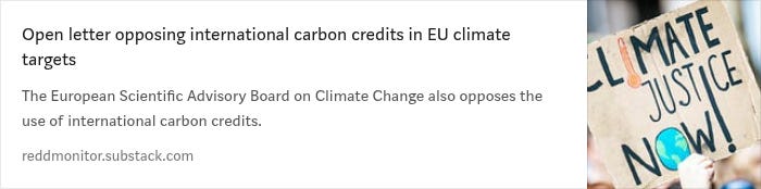 In June 2025, 130 civil society organisation, academics, and companies wrote to the European Commission opposing the use of Article 6 carbon credits in EU climate targets.