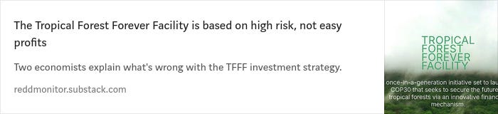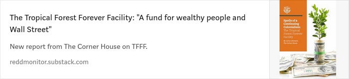 TFFF plans to exclude “investments that cause significant environmental impact, such as deforestation and GHG emissions,” according to the latest version of the TFFF Concept Note (which is dated October 2024, but is still only available in English, and is labelled “Official Use Only”).