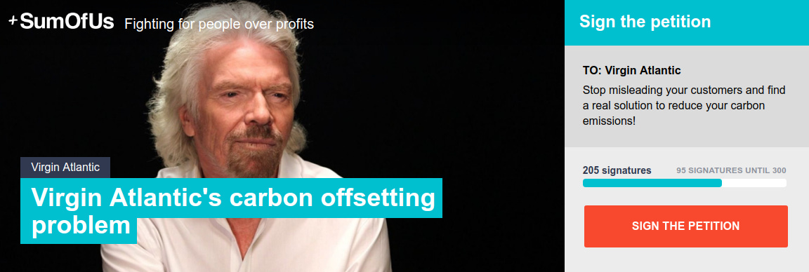 SumOfUs has set up a petition to Virgin Atlantic, asking the company to stop misleading its customers and find real solutions to reduce its carbon emissions: