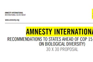 Amnesty International on 30×30: “Indigenous peoples and local communities experience violence and forced eviction in the context of…